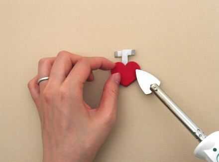 Cuando haya terminado, el lado derecho es positivo. Para conectar, coser a través de la pestaña con hilo conductor varias veces para hacer una buena conexión.