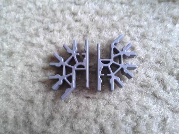 Tomar dos conectores gris y deslícelos juntos. Repita el procedimiento para obtener dos piezas. Conectar las dos piezas que ha hecho con una vara verde y añadir a la parte superior de la neckpiece.