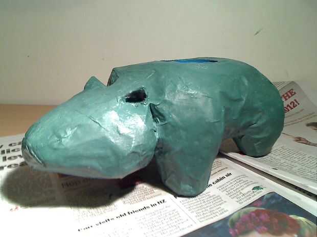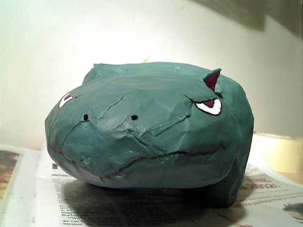 Esta parte es bastante sencilla, crear primero dos capas de una capa base de color verde azulado. Luego pintar los ojos con el rojo y blanco, son semi circulares en forma por lo que son muy fáciles de hacer. También pintar los interiores de las orejas con un tono rosado. Entonces, usando el marcador, dibuje la boca, fosas nasales y golpes en las rodillas.