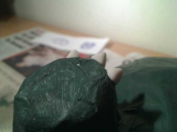 Con algún tipo de arcilla polimérica blanca, crear 12 garras y posicionar bien en los pies. Tomarlos y colocarlos en el horno hasta que se convierten en roca sólida. Finalmente caliente pegarlos todos en los pies por lo que todos parecen correctos.