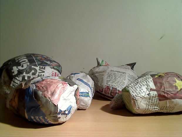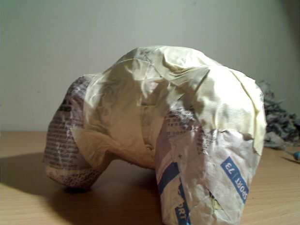 En primer lugar, coloque todas las piezas a donde debe ir, entonces tome nota de estas posiciones. Para las piernas, agarra el marcador y dibujar un esquema de donde va a cortar para caber en el cuerpo. Cuidadosamente usando un cuchillo de la manía, este corte y quite el exceso. Tire tanto del periódico dentro de la pierna como posssible. Repita este proceso para todas las patas.