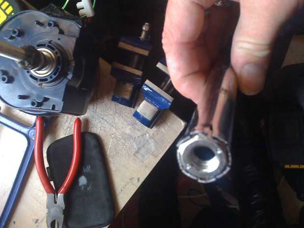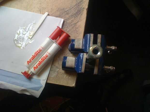 poner el carril en el vicio con la tuerca hacia arriba y mezclar algunas epoxi, esto de la goma alrededor de la tuerca y en las ranuras teniendo cuidado de no para cualquiera dentro de la tuerca donde el hilo es como esto arruinara el actuador. Es necesario dejar este sistema durante aproximadamente media hora antes de poder trabajar en el otro extremo y dejar durante al menos 24 horas antes de usarla para asegurarse de que su desaparecido correctamente.