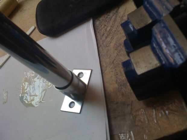 Ahora usted puede poner la resina de epoxy dentro el soporte del riel y poner el otro extremo del riel en a él, no el extremo de la tuerca, la puso en el vicio y la abrazadera, así que empuja el soporte de riel apretada hasta el ferrocarril, ahora puso epoxi alrededor de los bordes, rellenar los huecos y dejar que este conjunto.