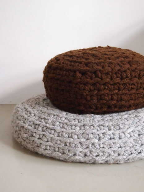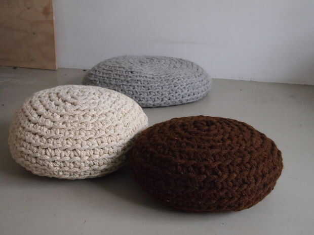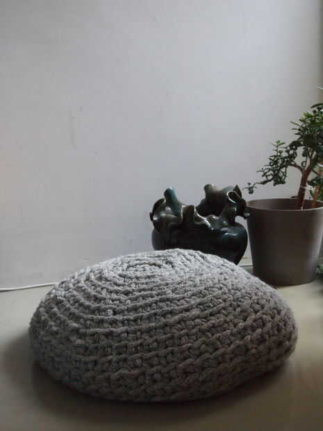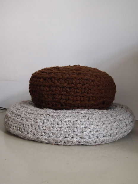 Acabo de terminar mi 3 PUF y pensaba ahora es el momento para compartir la receta. Los pufs son decorativos en su sala de estar, y muy fácil de hacer, lo único que necesita es mucha paciencia. Y mucho del hilo, toma 2kgs aprox para hacer un puf. Estoy usando una técnica de bobina-punto falsa que mi mamá me enseñó hacer hilado fino grueso cordón.