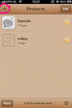 Descargar hiervoor eerst de aplicación (iOS/Android) a través de http://popapp.in. Inicio een nieuw proyecto puerta op het plusje (+) linksboven te klikken.
