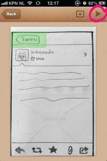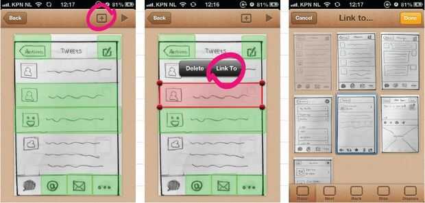 Haga clic en la imagen que es la primera pantalla de la aplicación. Haga clic en la esquina superior derecha en el icono de plus a añadir un enlace a la pantalla. Arrastre el espacio rojo en el lugar donde desea agregar un botón. Hacer este espacio tan grande como sea necesario.