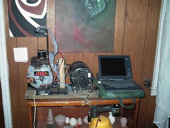 Es un viejo portátil 80286, utilizado como un TTY a la derecha.