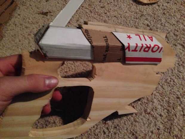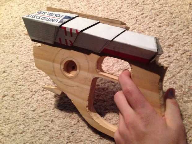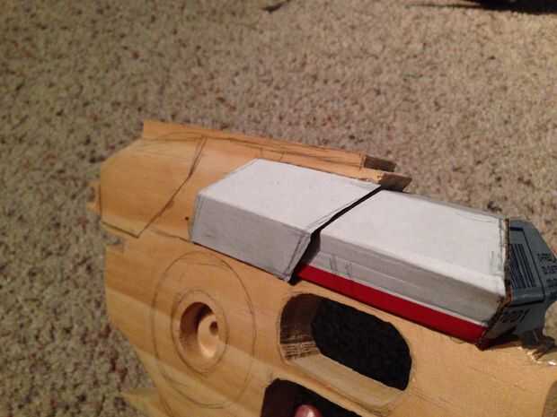 En el lado de Beamer vs3 son unas aletas que se superponen. Decidí hacerlos de cartón ya que la cartulina es fácil a la forma. Comenzar con la parte posterior y pegamento caliente las aletas a la estructura, movimiento hacia el frente. Utilizar las imágenes para guiarte.