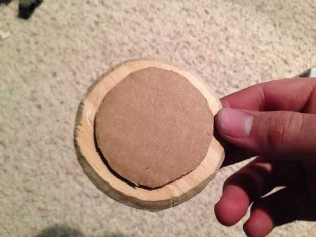 Añadir un círculo más pequeño de cartulina a la revista y pegarse un pedazo de cinta en otra perpendicular a la primera. Hacerlo sobre los huecos hasta que han cubierto la revista entera.