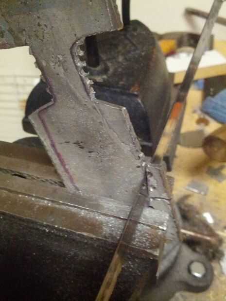 tubo muescas realizadas en la máquina de fresado Horizontal con Serrucho ordinario.Una vez realizado el corte inicial. Lima redonda luz limpieza con media.