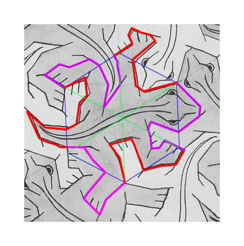 - Una teselación con patrón (yo usé los reptiles de M.C. Escher)