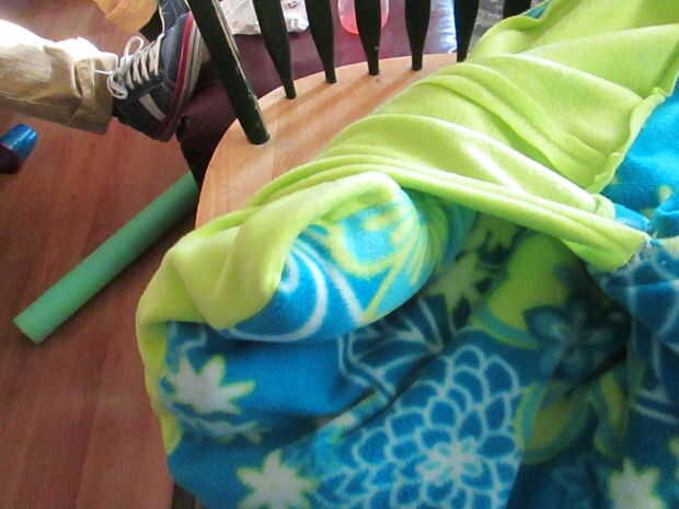 esto es una gran manta que te mantendrá caliente y pliegues en una almohada así! Ideal para paseos en coche, guardería, hogar y Estadio juegos de todo tipo.Paso 1: materiales-2 yardas de franela impresión-2 yardas de paño grueso y suave sólido-tijera