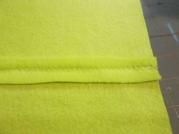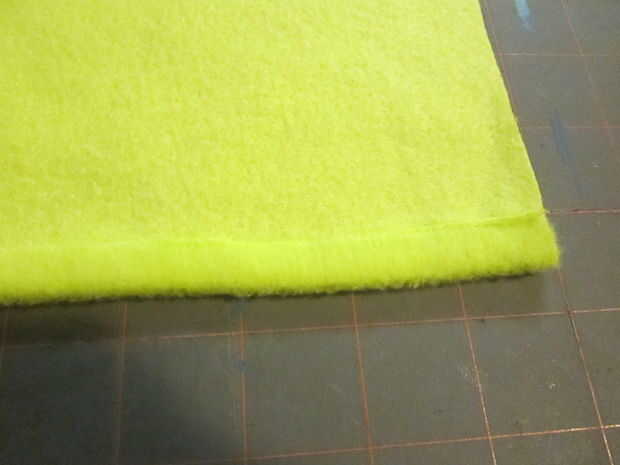 I tomó la bolsa y coser un dobladillo de 1/2 pulgada (1,25 cm) a lo largo de un lado largo y zigzagueaba por la mitad de la costura para mantenerlo plano.