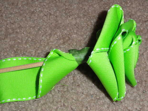 Tomar cinta floral verde y enróllelo alrededor de las cintas pinchadas.