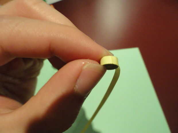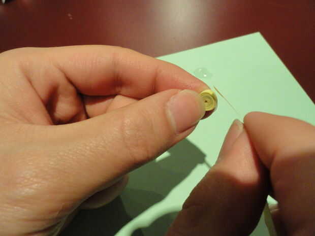 Coloque la punta de la segunda tira a donde acaba en la primera espiral con pegamento de gel.