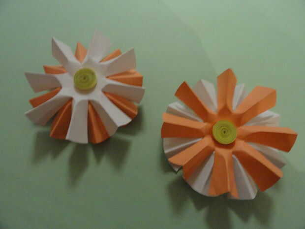 Conectar el centro de la flor al centro del disco de dos capas en el paso 19.