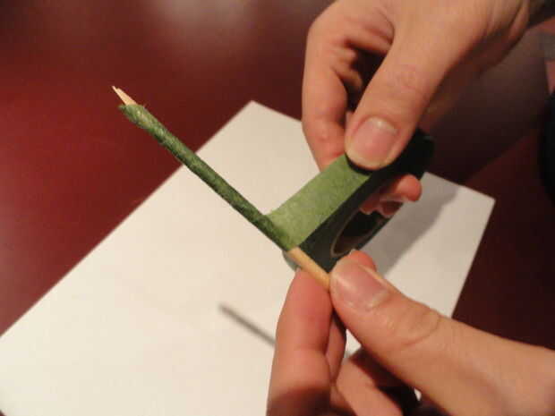 Ahora toma la cinta floral verde y Envuélvala alrededor de la cazoleta hacia abajo en espiral, creando una apariencia de tallo.