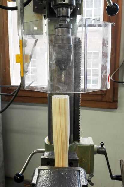 Usé alambre de 3 mm de diámetro, por lo que también se utiliza una broca de 3 mm. hacer cinco agujeros en el mango de madera, para cada dedo uno. No colocar directamente al lado del otro, pero trate de conservar la línea natural de los dedos mirando a tu propia mano y decidir donde se colocan los dedos.