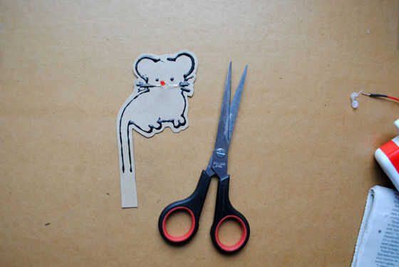 Con sus tijeras, corte alrededor de su ratón para delinear su cuerpo. Recuerde que la cola debe ser 12mm de ancho para caber en su puerto USB.