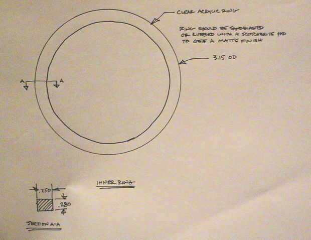 Primero cortar el anillo interior de la hoja de acrílico transparente y untarlas con una almohadilla de scotchbrite (lana de acero también trabajaría.)