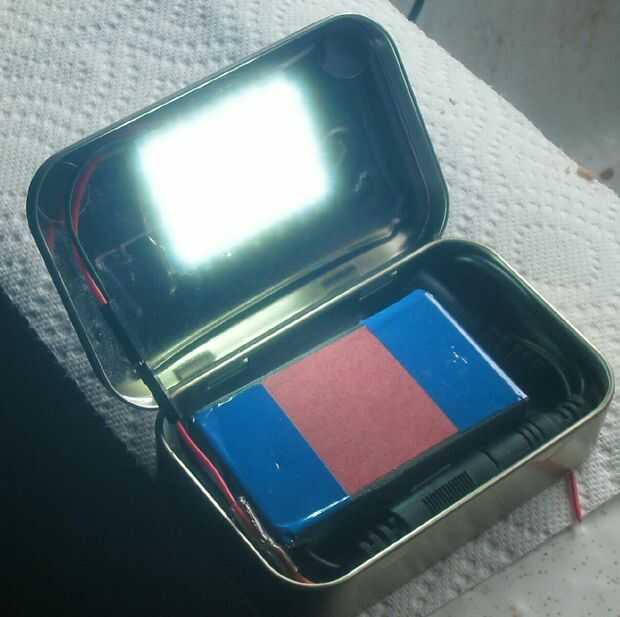 en este poder instruir le mostraré cómo hacer una luz recargable del bolsillo LED inundación, lo que se necesita, lata altoids, batería de litio 12 voltios con cargador, panel de luz led 24, 1 macho 12v. conector tubo del encogimiento del calor, silicona, 2 pequeños imanes. herramienta necesaria - cortador/pelacable. más ligero. Esto está disponible en Ebay en este enlace