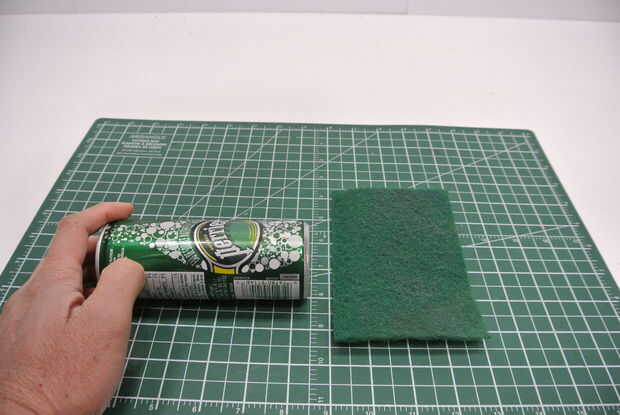 Usando a saque de almohadilla para fregar la pintura de una lata. Es más fácil con un completo poder como la presión mantendrá el poder de trituración. Esto es puramente para la estética y es opcional, este será el exterior de la estufa.