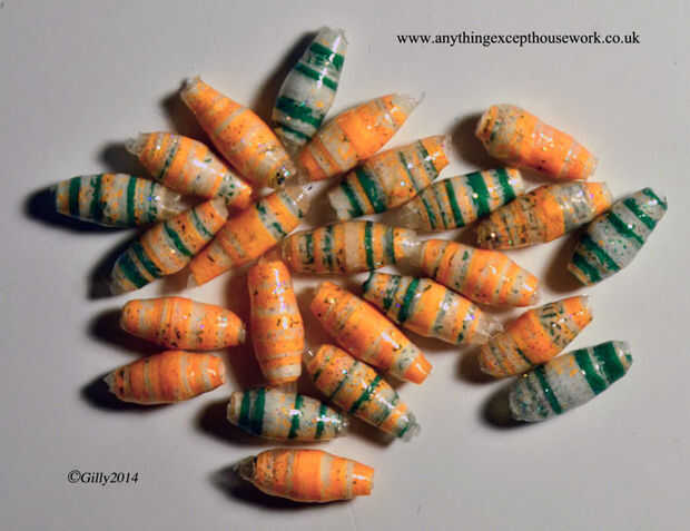 A continuación, utilizando un palillo de dientes o un grano del balanceo herramienta (nunca llegar junto con el método del palillo de dientes y asi que me hice mi propio rodillo de grano), ruede para arriba todos los tiras de la bolsa de papel con el lado coloreado mirando hacia fuera (¡ por supuesto!)