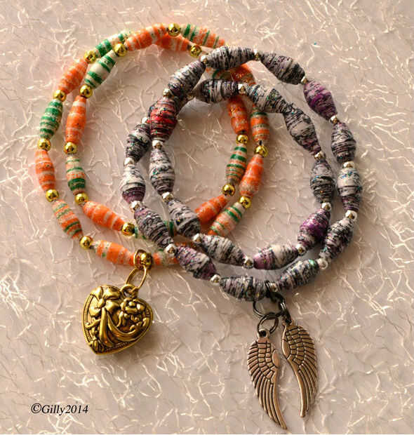 Finalmente, saque sus cuentas de los palillos de dientes y utilizar un pincho de bambú para meter en el agujero y empuje hacia atrás la aleta de papel que queda del balanceo de la herramienta de grano. Utilice tijeras para cortar el exceso de cola secado o esmalte alrededor del agujero.