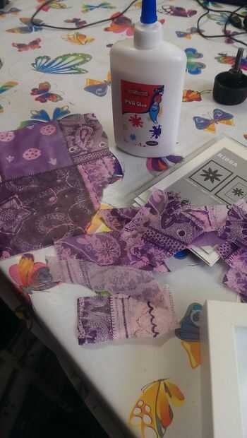 Rasgar la servilleta/papel en small-ish cuadrados y poner pegamento en una tina. He optado por utilizar tinas de pintura de algunos niños con 'anti-derrame' como yo soy bastante torpe. Luego quite el vidrio y otras vísceras y ponerlas fuera del camino.