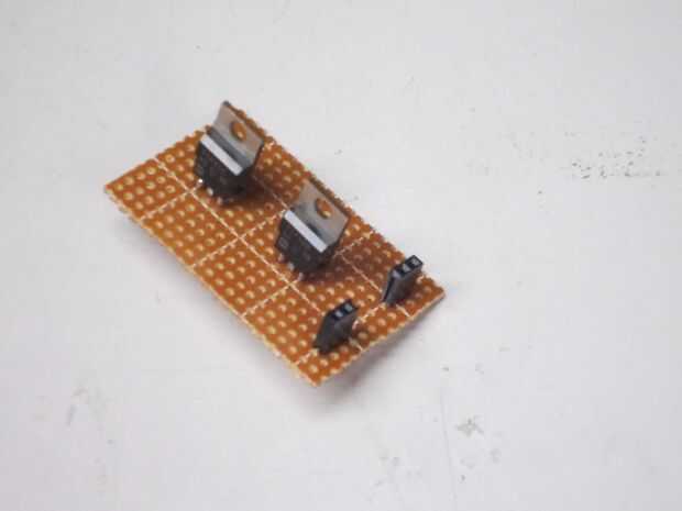 La soldadura en las pequeñas cabeceras mujer 1 x 2. Alternativamente, puede usar terminales de tornillo (terminé cambiar los dos un fin) para una conexión más fácil. Una vez más, dejar espacio entre los encabezados y los transistores de los demás componentes.
