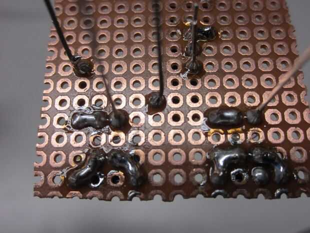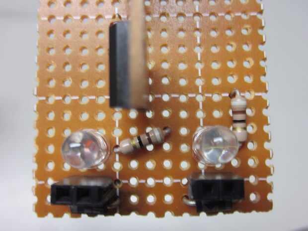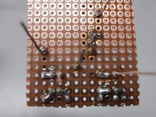 Soldadura de la resistencia 100Ω en el perfboard, con uno de los cables conectados al ánodo del LED (más plomo). Ajuste la resistencia de uno y del ánodo.