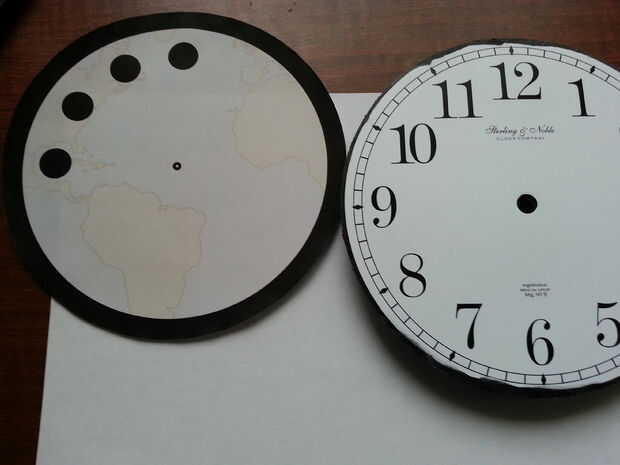 3. (opcional) recorta un círculo en blanco del mismo tamaño que la cara del reloj para cubrir cualquier sangrado a través del diseño ya en el reloj.