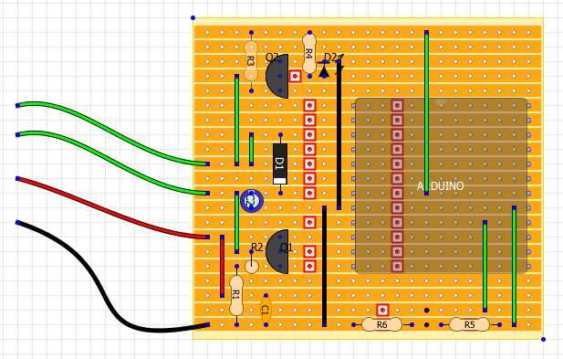 Con el diseño del circuito y el prototipo en protoboard, me trasladé a construirla en un placa perforada. Utilizar una pequeña aplicación Java llamada DIYLC para diseñar la disposición de la Junta de tira.