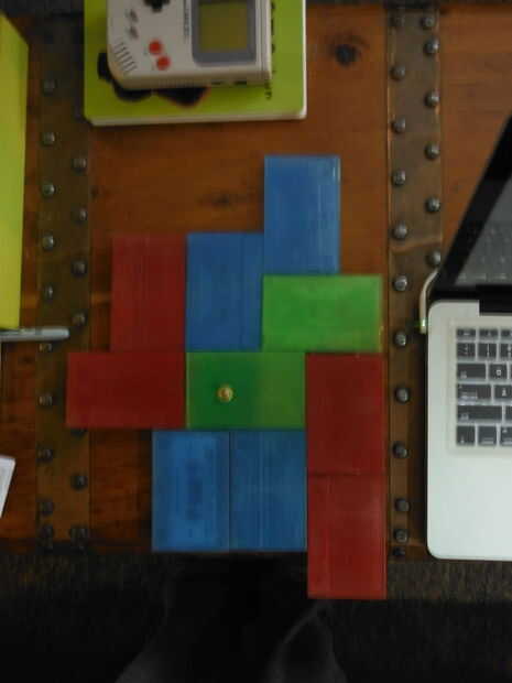 Después de que la pintura se seca, luego puede pegar sus bloques de colores junto con la pistola de pegamento caliente.
