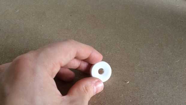 Entonces rosca otra longitud de cadena a través de los orificios internos como se muestra. Después de dos de los palos sin bolas entre la izquierda y ató la cadena a través y alrededor de dos palos y apretados juntos. Luego encontré una tapa de un cartón de leche que cabe perfecto en el centro. Había presentado y me perforó un agujero a través del centro. El agujero debe ser del mismo tamaño que el tornillo en el equipo de movimiento de reloj de cuarzo.