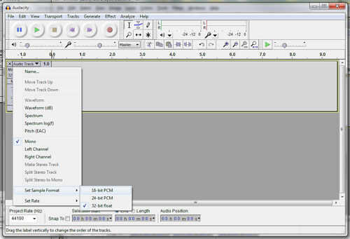 Audacity es un gran programa para grabar audio. Usted puede descargar Audacity aquí. Cuando se usa el Audacity, asegúrese de establecer las propiedades de pista PCM de 16 bits, frecuencia de 16khz. Mono es fina, estéreo funcionará, pero yo solo conectado un solo altavoz (y ¿por qué el reloj necesita ser en estéreo?).