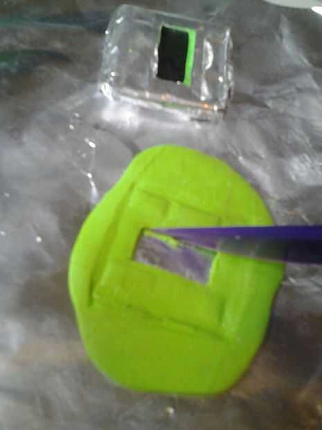 A continuación, pulse el reloj dentro de la pieza plana para tener una precisa cortar la línea para el agujero de la pantalla... n cortarlo hacia fuera.