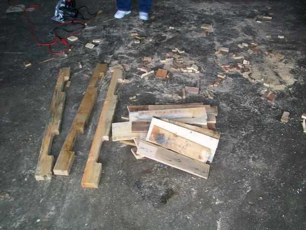 Una plataforma consiste en generalmente 3 "2 x 4" con 1/2" espesor tableros clavados a través de ellas. Para desmontar la primera plataforma, utilice una sierra circular para cortar las mejores tablas a lo largo de los bordes donde están clavados a la 2x4s. (Tenga cuidado evitar clavos y tratar de no cortar el 2x4s)