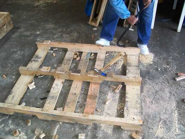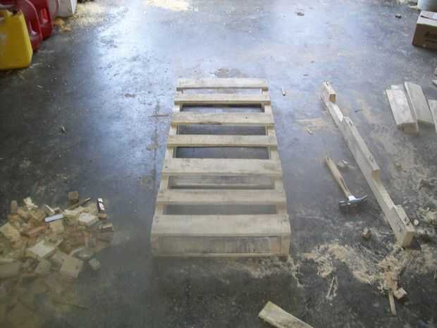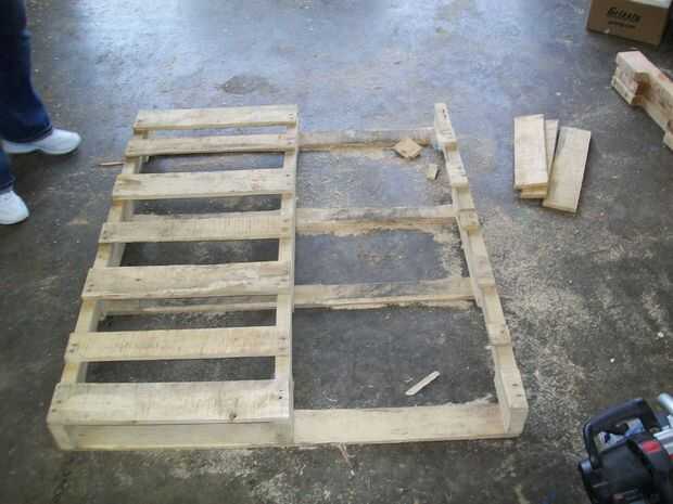 Voltee la plataforma, repita el proceso hasta que tengas 3 2 x 4 y un montón de paletas de madera.