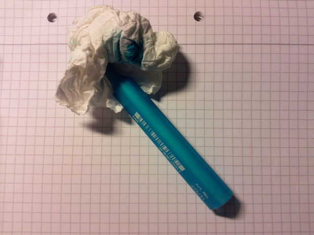 Para hacer esto simplemente tomar una toalla de papel o tejido y envuélvalo alrededor de la punta de su marcador de texto.
