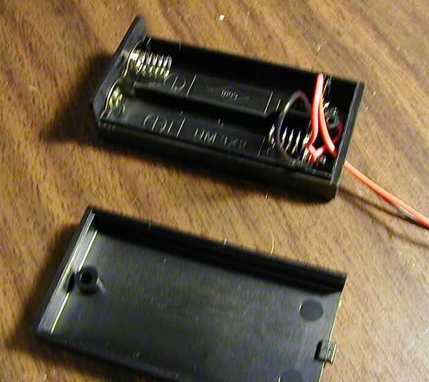 En el probador terminado, tocar las pinzas de rojas y negras juntos hace que el LED enciende para arriba. Energía es proporcionada por 2 baterías del AA en el titular. Solamente un agujero debe taladrarse para ajustarla al tamaño LED utilizado.