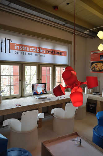 las instrucciones para todo lo encontrado en un restaurante de Instructables se pueden encontrar en Instructables, la comida, los muebles, la iluminación, todo!  Para realizar esta conexión clara y comprensible y dar crédito a los autores de los proy