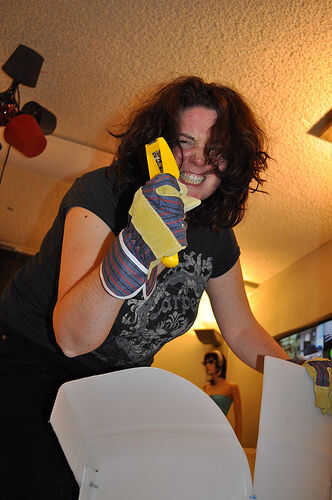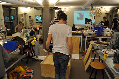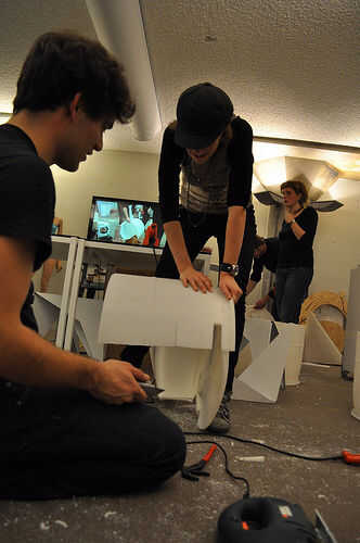 3. organizar grupos para cada elemento que necesita ser hecho. Que sobre la personalidad y cualidades personales de las personas involucradas. ¿Prácticamente se trata de la gente que le gusta hacer cosas precisas para mediciones, gente que le gusta trabajar duro y rápido para cortar atornillar y percusión y electrónica? Y no te olvides de invitar a una o dos personas que les gusta limpiar y cuidar de todo lo demás (pidiendo la pizza, poner cervezas en la nevera) así que el resto pueden hacer su trabajo.