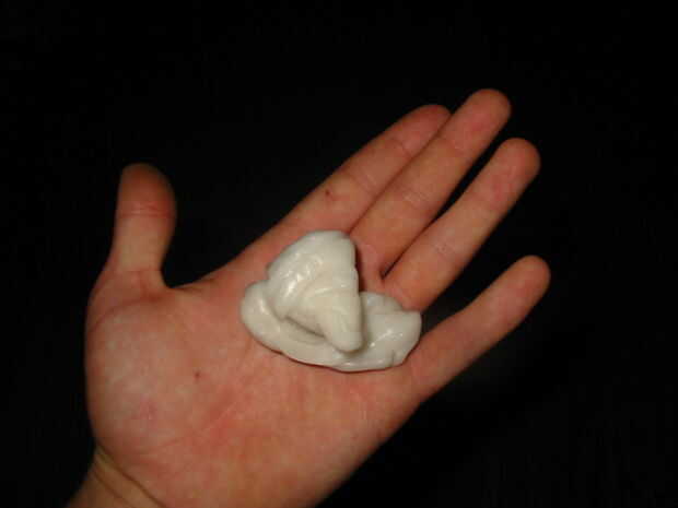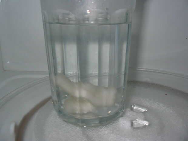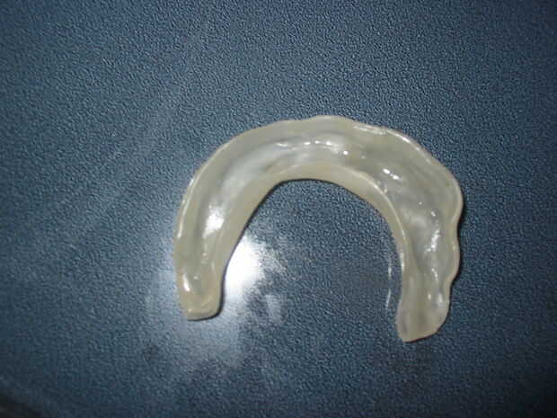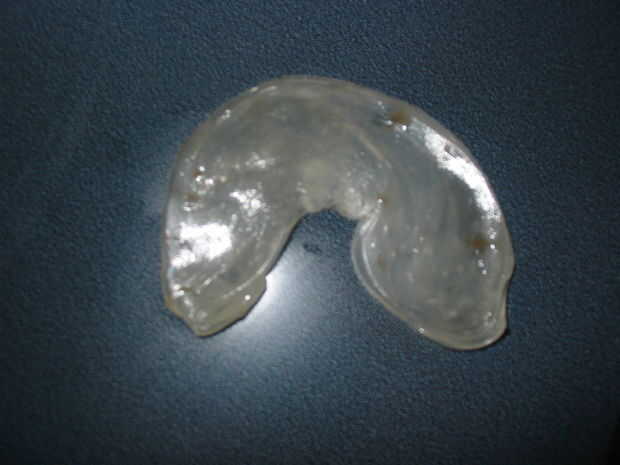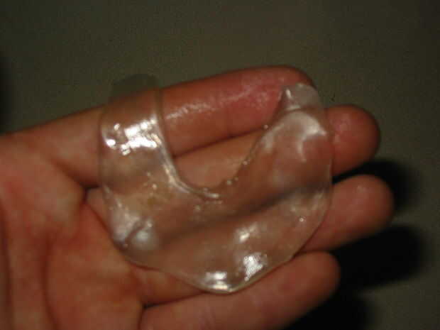 Llenar el vaso con agua y ponerlo en el microondas hasta que las burbujas (alrededor de 2 minutos). El plástico shapelock Vierta el agua y lo deje reposar hasta que esté todo claro. Utilice un tenedor o algo más para presionar el plástico juntos en una bola. Una vez que esté totalmente claro, sacar con un tenedor y tirar un trozo de él, alrededor de 5 g. Entonces forma en semicírculo en la forma de sus dientes. Asegúrese de que es amplio por lo que se puede doblar sobre los dientes. (Ver foto)