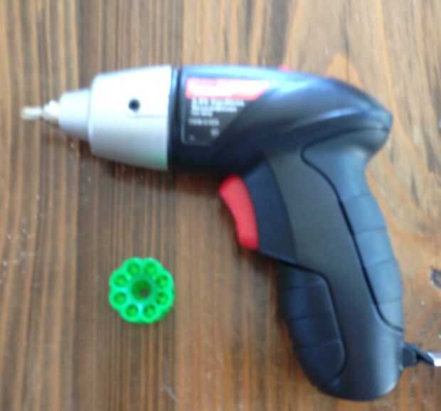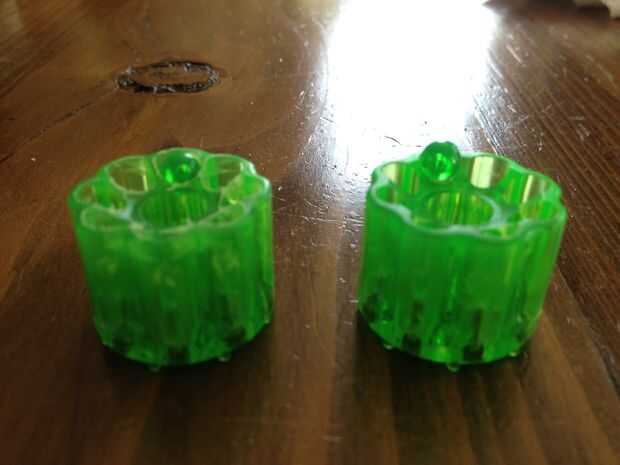 Tome la cosa verde en el centro de la pistola, y en el lado opuesto de donde pones las caps en, debe haber ocho hoyos. Una vez que encuentras, perfore los lados poco más grandes, por lo que las balas de airsoft cabrá perfectamente en los orificios, evitando que caigan hacia fuera. Para encontrar el tamaño correcto del orificio necesita caber su bala de airsoft, perfore un poco y ver si puede caber la bala, si no, repetir. Si la bala se desliza fácilmente en, han perforado el agujero demasiado y debe probar la otra pistola. Una vez que se han perforado todos los agujeros, rellenar los agujeros con las balas del airsoft, luego inserte los tapones en el otro lado. Su munición está ahora listo para ir!