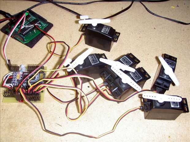 Yo siempre conectar el hardware para la placa de circuito para comprobar que funciona antes de construir un robot. En este paso, conectar los servos a la Junta y simplemente hacerlos mover.