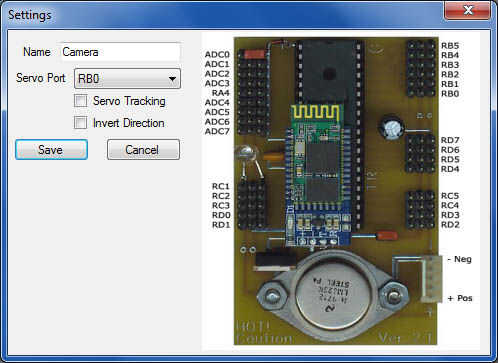 - Seleccione el Puerto Servo que está conectado el servo de cuello (uno que se mueve la cámara)