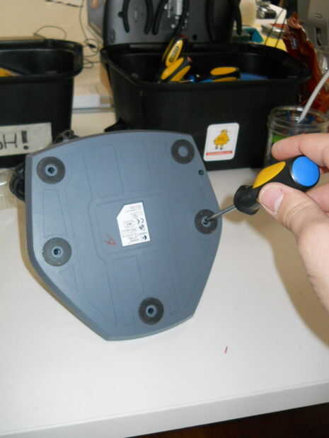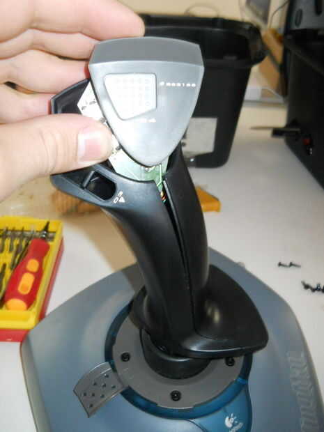 Un destornillador y abrir el joystick. Desmonte, ya que tendrá el caso, el mango, el anillo de plástico debajo de la manija y tal vez otra piezas.