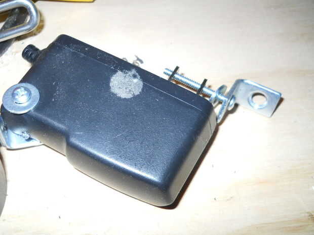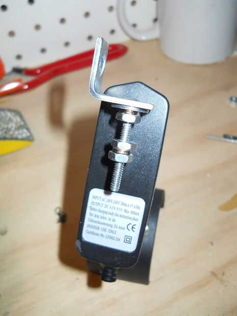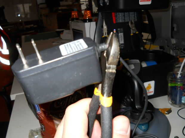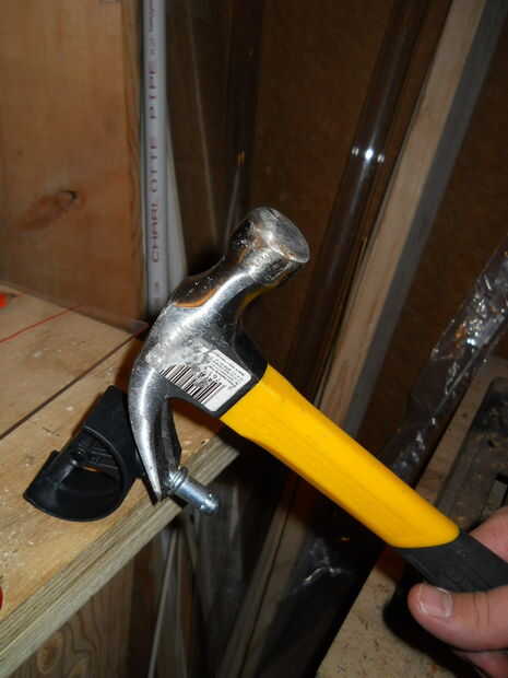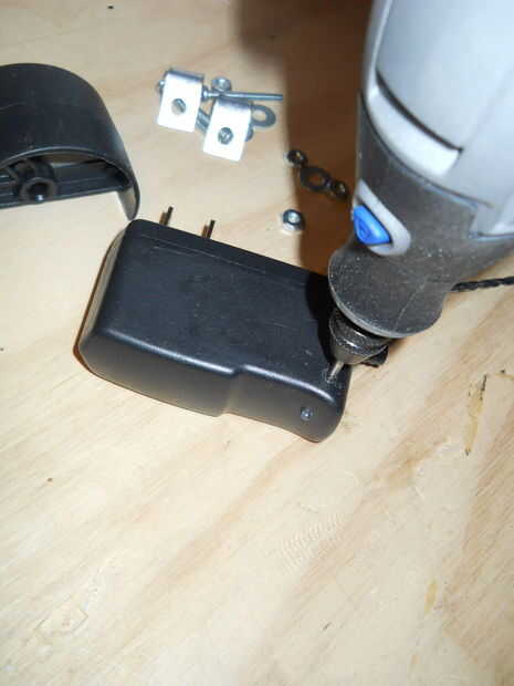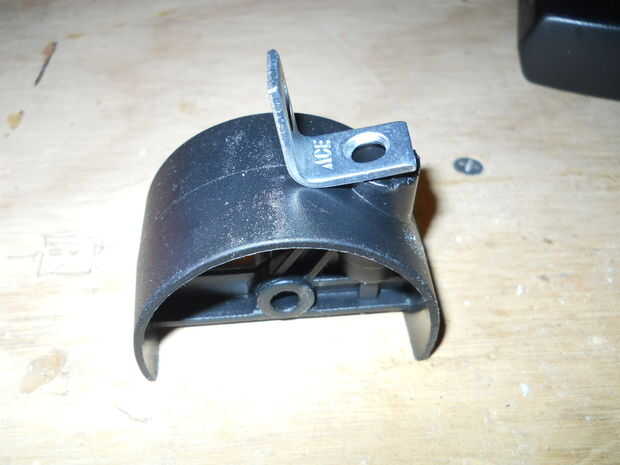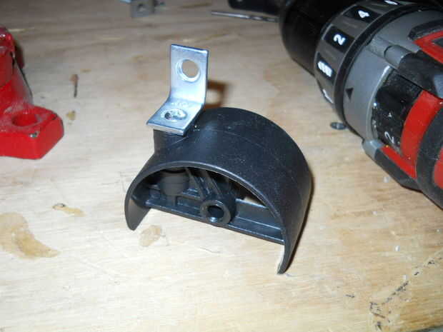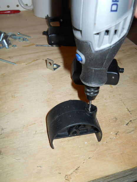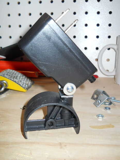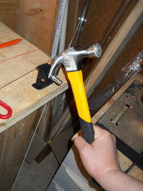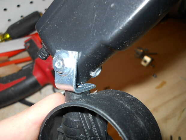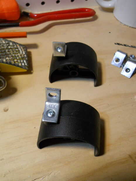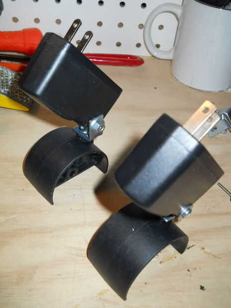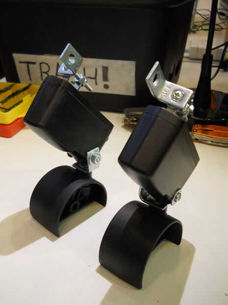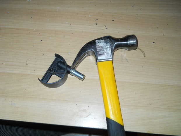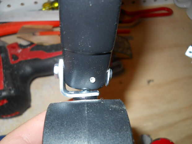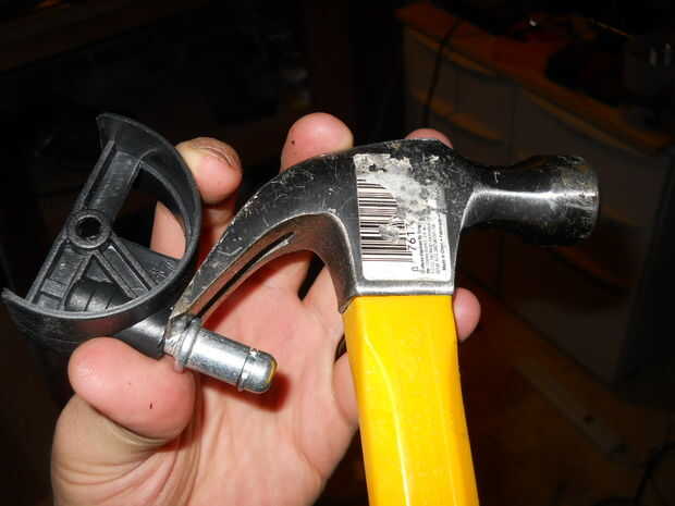 Para los pies, utilizar el montaje de las ruedas de plástico para sillas. Puede quitar las ruedas de la manera demostrada en mi "hacer un Robot de la lámpara" instructable. Ahora quite el eje metálico superior, usando un martillo en el lado de dientes. Ten cuidado, porque un mal movimiento podría resultar en heridas.