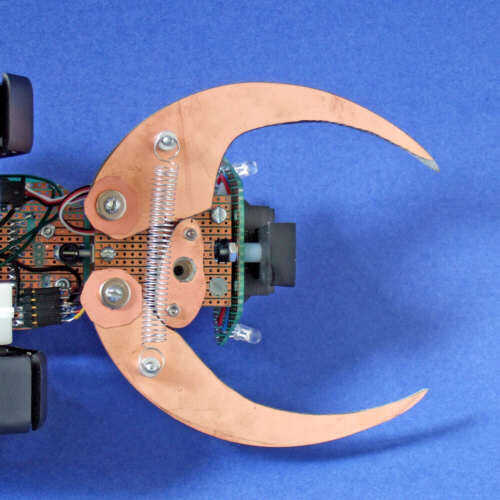 La hormiga garra dedos y cuerpo se hicieron con material de placa de circuito de FRS con cobre. Los cojinetes de pivote son apenas 4-40 pernos a través de orificios perforados en la placa de circuito.